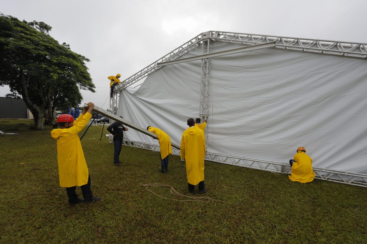 dormitório tem a identificação do usuário na porta. Consultórios médicos foram montados para a realização de possíveis atendimentos.